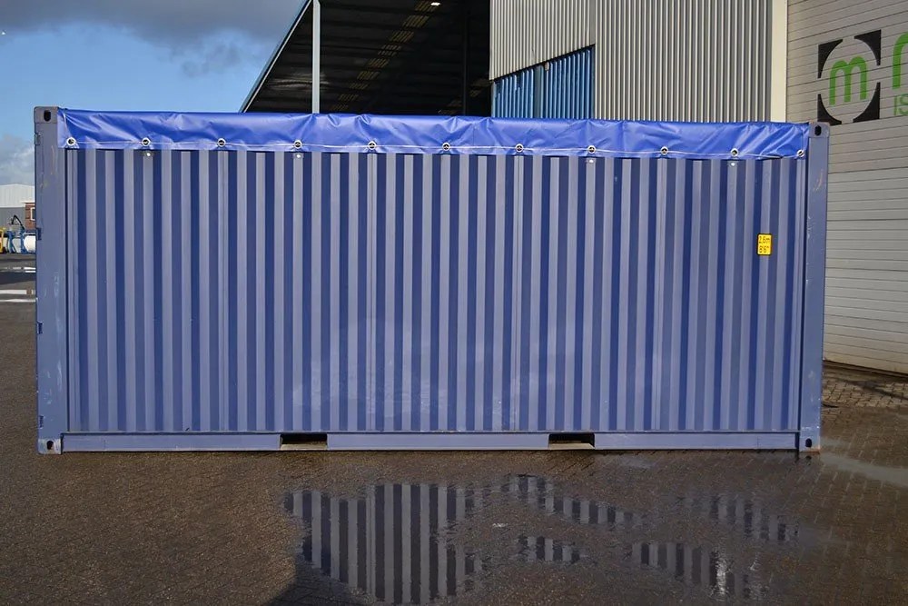 Open Top Containers are containers built for freight use, with a tarpaulin instead of a steel roof. The cover can be removed during loading, to enable top loading of overly high products. The 20′ Open Top HC Container has removable support bars under the tarpaulin and a TIR cable for fastening the tarpaulin to the container. All our Open Top Containers are approved for international freight transport (CSC). New and used 20′ HC Open Top Containers are available with fast delivery.