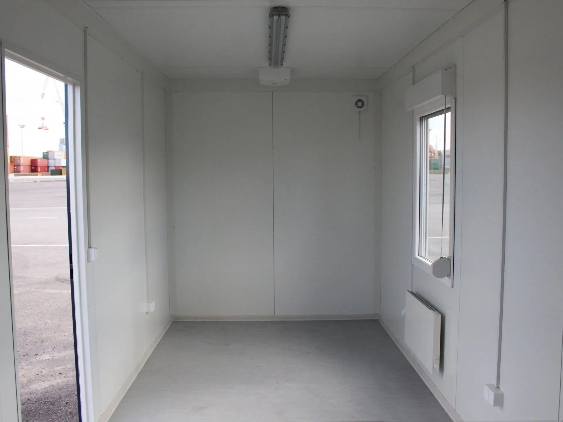 The 20′ (6 m) Office Container is a very high-quality and long-term solution for many uses. This container offers the best price-quality ratio for office containers in Europe and cheap models cannot even compete with it. At about 12 m², the Office Container provides an insulated and heated office, storage or break room space with lights. Standard equipment for the container includes lights, power sockets, windows, ventilation, and excellent thermal insulation suitable for year-round use. The light surfaces create a bright interior. Containers can be combined together to create larger container spaces. The power supply is a 5-pin 32A socket, which can be converted to 16A with an adapter.