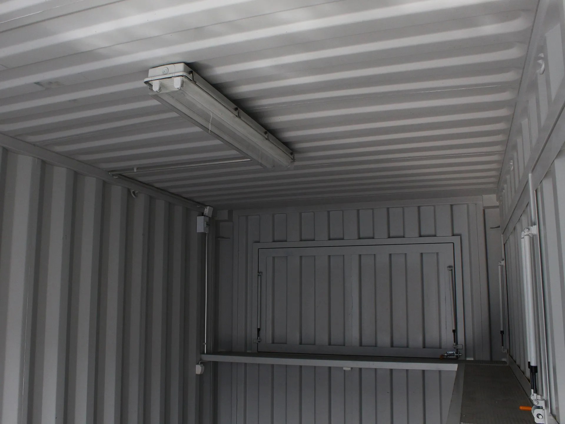 - 1 lockable serving hatch with gas springs on one end wall. Dimensions (lx) approx.1950mm x 900mm