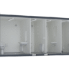 The container can be equipped with numerous accessories or various floor space solutions such as two barrier-free toilets or chemical toilet (caravan) emptying areas. Toilet facilities are equipped with ceramic toilet seats, toilet paper holder, ceramic hand washing sinks, and mirrors. The size of the hot water boiler is 50L and the boiler is equipped with a mixing valve. The design of this barrier-free toilet is based on the recommended instructions and requirements. The Toilet Container can be supplied with special colours and numerous accessories, such as a baby changing table, alarm systems and bidet showers.